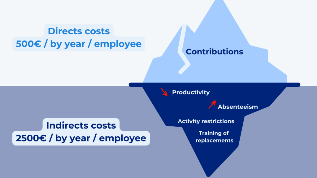 On the surface, the cost of MSDs is around 500 euros per year per employee. This corresponds to the contributions companies have to pay. However, the hidden face of the iceberg reveals an altogether different reality: indirect costs.