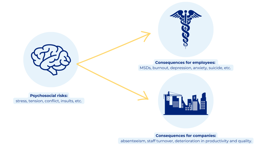 The consequences are numerous, both for employees (musculoskeletal disorders, professional burnout, depression, anxiety, suicide, etc.) and for the company (high absenteeism rates, significant turnover, degradation of productivity and quality).